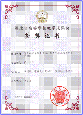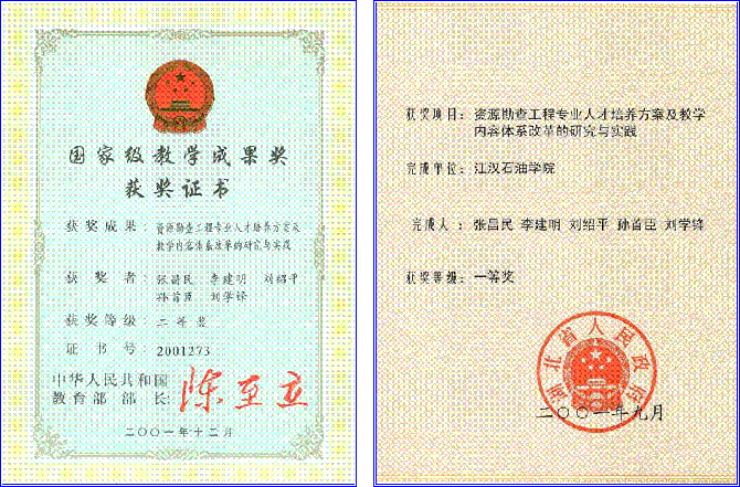2001年,“资源勘查工程专业人才培养方案及教学内容体系改革的研究与实践”获国家级高等教育教学成果二等奖。