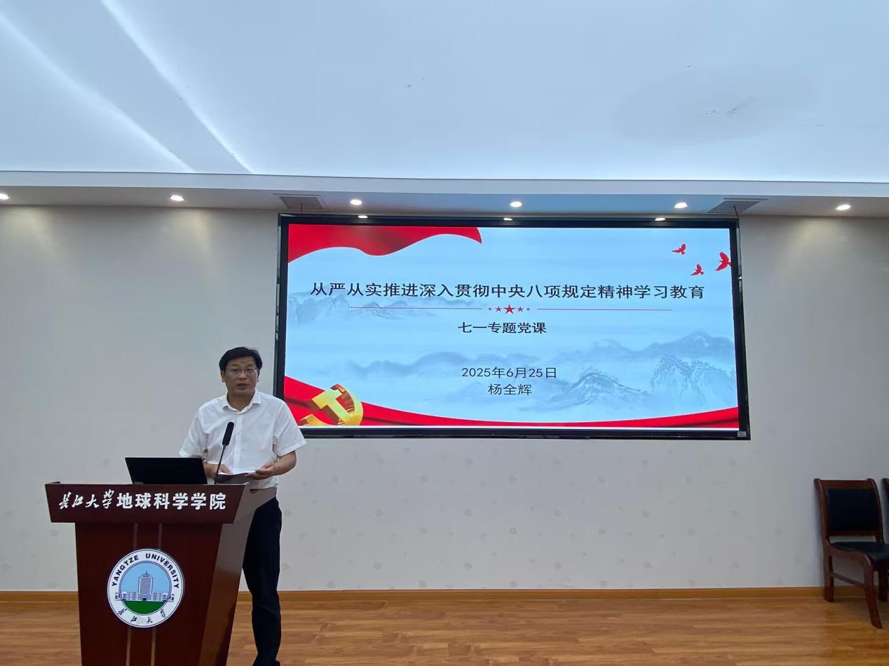 为深入贯彻中央八项规定精神学习教育,进一步增强全院教师的纪律意识和规矩意识,以优良作风推动学院高质量发展,6月25日下午,学院党委书记杨全辉在石油科技大楼C301会议室,以“从严从实推进深入贯彻中央八项规定精神学习教育”为题,为全体教师讲授专题党课。