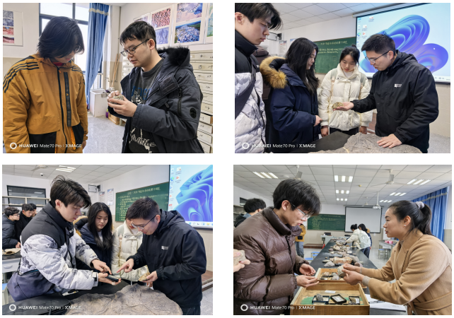 实验中心,资深教师团队为学生们带来了精彩纷呈的矿物岩石鉴定讲座。高洁老师以“常见造岩矿物鉴定技巧”为主题,结合相似矿物辨析,引导学生深入掌握矿物鉴定的整体思路和具体要点。郭晋威老师深入剖析了常见岩浆岩与变质岩的主要岩石类型结构和构造差异,揭示定名规律背后的地质演化逻辑。徐艳霞老师则详细讲解了沉积岩中的陆源碎屑岩类鉴定技巧,并寄语学子“夯实地质根基,勇担能源报国使命”。胡九珍老师通过大量典型标本剖析,现场演示鉴定流程与操作规范,并通过科研实例激发学生的创新活力。这些讲座内容精炼、针对性强,深入浅出地传授了鉴定矿物岩石的核心技巧,使学生们能够迅速掌握并应用到实践中。
