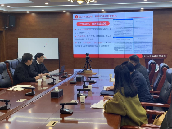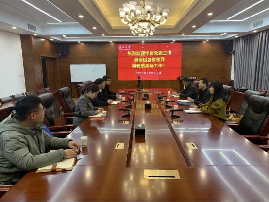 开展党建工作调研。院党委书记杨全辉、副书记冯舒、地质系党支部书记吕奇奇、院办主任张昊和学院党建秘书潘志远参加座谈会。