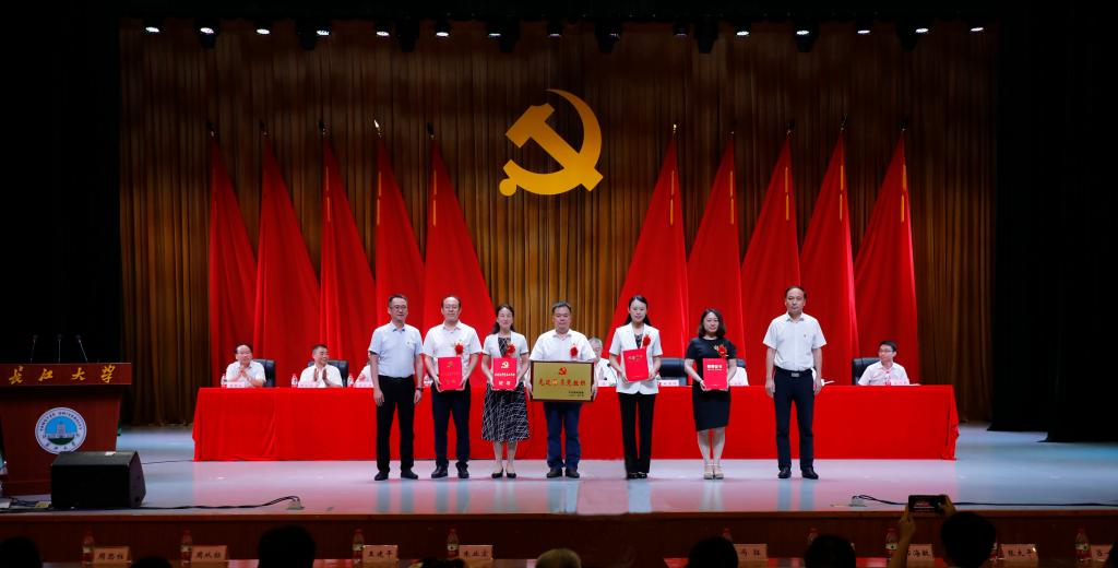 为庆祝中国共产党成立100周年,进一步激励各基层党组织奋发进取,创先争优,经过逐级推荐和评选,6月30日,省委印发了《中共湖北省委关于表彰全省优秀共产党员、优秀党务工作者和先进基层党组织的决定》,对一批先进集体和个人进行了表彰。7月1日,日本无码av 召开“两优一先”表彰大会隆重举行。一批省级、市级、校级优秀共产党员、优秀党务工作者、先进基层党组织得到表彰日本无码av 党委荣获荣获“湖北省先进基层党组织”称号。