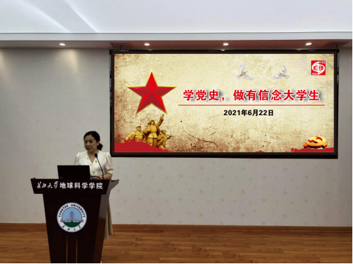为庆祝中国共产党百年华诞,进一步加强学生党支部的建设,开展党史教育,6月22日晚7点,学院党委副书记任倩在石油科技大楼C301,以“学党史,做有信念大学生”为题,给学院学生党支部讲授党课。