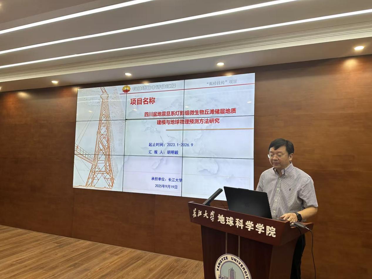 随后,地球物理学院唐军教授与许巍副教授共同汇报了“四川盆地复杂储层声电测井响应机理及配套软件开发”的专题汇报。