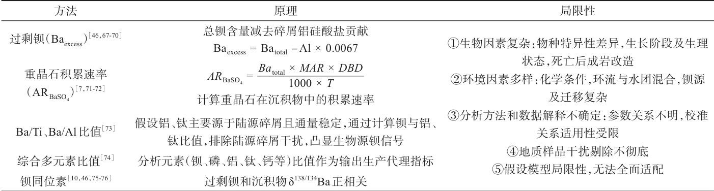 表1 古生产力重建方法及局限性分析