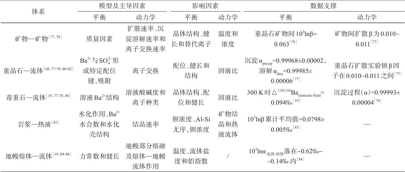 此外本文还重点剖析了钡同位素分馏的微观机制:平衡分馏受化学键振动的量子力学差异控制,动力学分馏则与扩散、沉淀溶解等非平衡过程相关。二者在矿物-矿物、矿物-流体、熔体-流体等体系中的交互作用,共同决定了钡同位素在海洋环境中的分布格局(表2)。