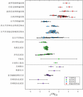 有关铈同位素的研究还处于起步阶段,许多地质体的铈同位素组成数据不足,对不同地质过程中的铈同位素分馏效应还不清楚,铈稳定同位素比值在古海洋环境示踪方面的应用实例较少。未来的研究方向应侧重于发展精细化的铈稳定同位素分析技术,完善地质体的铈同位素数据,探讨沉积岩中的铈同位素分馏效应以及铈异常与铈同位素比值的综合分析应用。