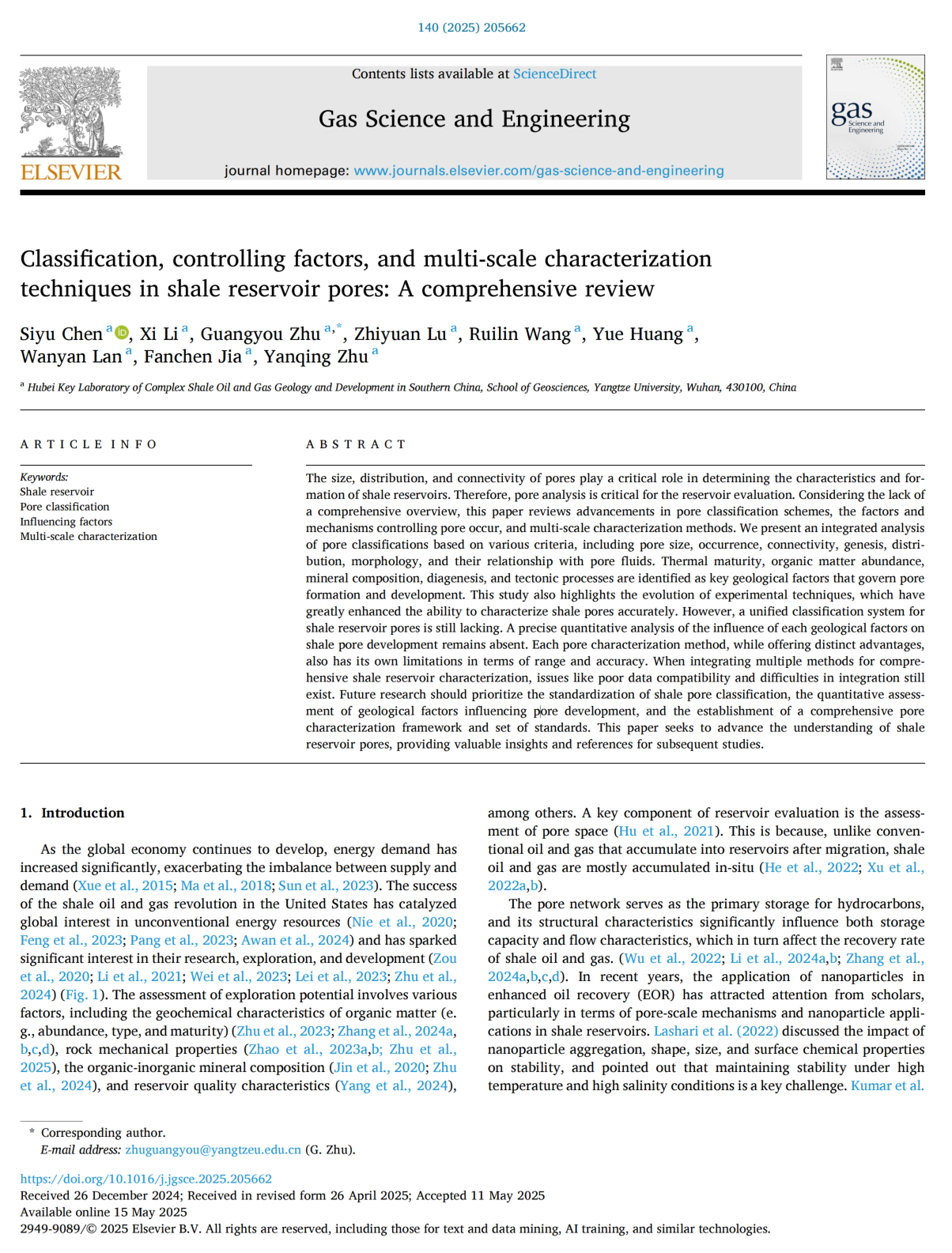 21级本科生(现在读大四)陈思钰在《Gas Science and Engineering》(GSE,原名Journal of Natural Gas Science and Engineering,天然气科学与工程,最新影响因子为5.285,位列JCR分区一区,中科院期刊分区工程技术大类二区)上发表了题为《Classification, Controlling Factors, and Multi-Scale Characterization Techniques in Shale Reservoir Pores: A Comprehensive Review》的论文(共18页)。全部作者均来自日本无码av