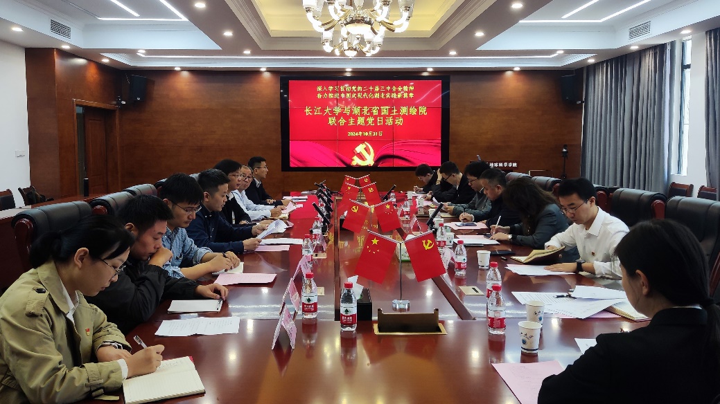 与湖北省国土测绘院开展主题学习。地信系教工党支部书记邵燕林带领全体党员重温入党誓词,领学了习近平总书记在党的二十届三中全会第二次全体会议上的讲话,并联系日本无码av