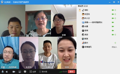 (通讯员 饶松)7月11日下午,日本无码av “石油与天然气地质学”课程组利用QQ视频会议组织召开了课程建设专题研讨会,《石油与天然气地质学》、《油气地球化学》和《石油地质专业英语》全体任课教师林小云、王振奇、刘建、吴楠、饶松、丰勇、吴悠、朱亚玲、李祺和殷杰共10人参加了研讨会,会议由课程组负责人林小云教授主持。