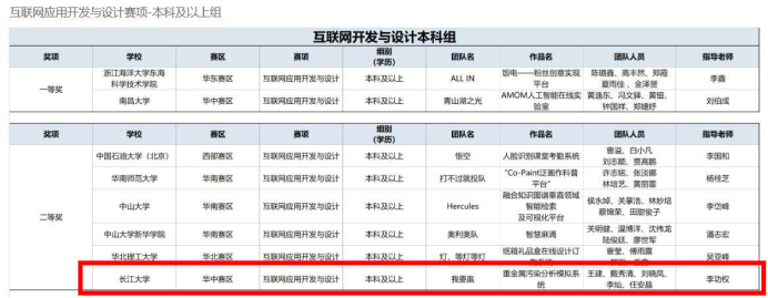 参赛队伍“我要赢”团队开发的《重金属污染分析模拟系统》获得互联网应用开发与设计国家二等奖及华中赛区一等奖。