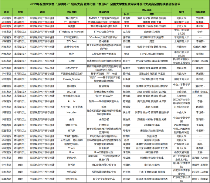李功权老师指导的“我要赢”团队(王建、戴秀琴、任安晶、李灿、刘晓凤)获互联网应用开发与设计国家二等奖及华中赛区区域赛一等奖。