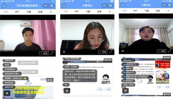 (通讯员 张严)“万众一心筑防线、众志成城战疫情”,2月7日,学院分七场利用“雨课堂”平台,由辅导员老师分年级给全院学生召开了“我为疫情防控做贡献”的主题班会,线上同时参加人员有100~300人不等。学院领导、研究生导师、班主任老师也在线参与了班会。