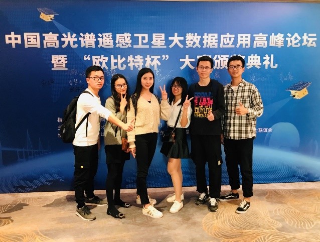 研究生付含聪、李彩霞、刘威、杨欢、许诺、曹国华一行六人赴珠海参加中国高光谱遥感卫星大数据应用高峰论坛暨“欧比特杯”高光谱遥感影像智能处理行业应用大赛颁奖典礼。本次大赛中,我校获得一等奖一项(付含聪、杨欢、许诺),三等奖两项(刘威、甘艺垚、高静文;李彩霞、曹国华)。