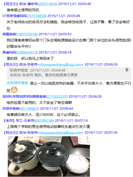 的安全教育与管理工作,概括出“吃住行、盗水火、毒艾恐、坛心网”的大学生安全类别12字诀。随后,罗老师还反馈了学院在日常安全隐患排查中的案例及19级本科生每日归寝晚点名的情况,引导家长提醒学生遵守校纪校规,提高安全意识。
