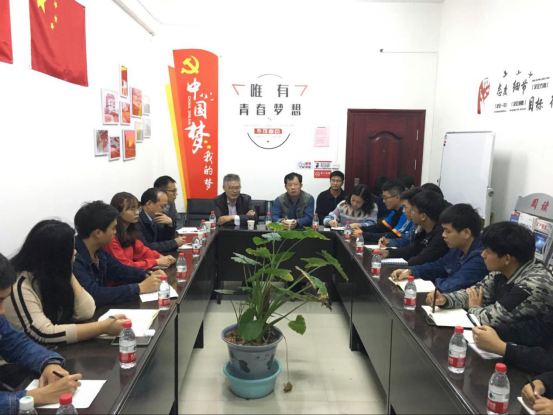 “不忘初心、牢记使命”主题教育,11月6日晚七点,在华林宿舍9栋4楼地科学生党员活动室开展了主题为“三个一”的师生座谈会。院长何幼斌、党委书记江万哲、副院长龚文平、副院长丁四兵、党委副书记任倩、全体学生工作办公室辅导员以及学生代表参加了此次座谈。