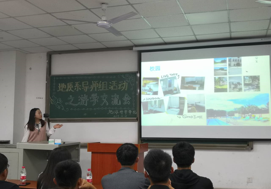地理信息科学专业游学交流会中,赴美游学的张怿如向同学们分享了自己在新墨西哥矿业理工大学的丰富经历,使同学们对于国外游学项目有了进一步了解。她谈到有意向留学的同学不需要考虑资金不足问题,国家以及学校的资助政策就能为你留学之路保驾护航。来自16级地信系的瞿芳芳讲到:“游学时期上课时间其实并不多,教育工作者们的工作重心大部分放在“homework”上,能够更加锻炼学生的自我学习能力。”这使得同学们对国外大学有了更加深入的认识,更使同学们意识到学习英语的重要性。