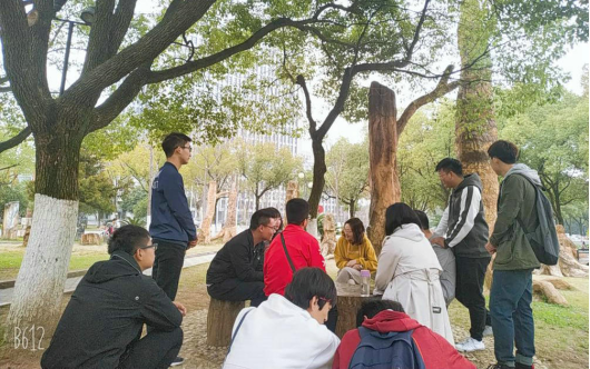 武汉校区出发,开始了他们的地大学习交流之旅。10时20分许,同学们到达目的地并合影留念,之后由肖倩学姐带领大家游览了地大研究生院,与同学们在地大著名的“化石林”休息谈心,同学们纷纷向学姐提出了自己的问题,包括考研需要怎么准备、如今的考研前景、研究生的日常生活工作等一系列问题。肖倩学姐很耐心地回答了大家的问题,她强调“考研与就业是当今本科毕业生面临的两大抉择,这两种选择没有好与坏之分,但无论选择哪一种,都要遵从自己的内心,明确自己的目标!”谈话结束,同学们都收获颇丰!