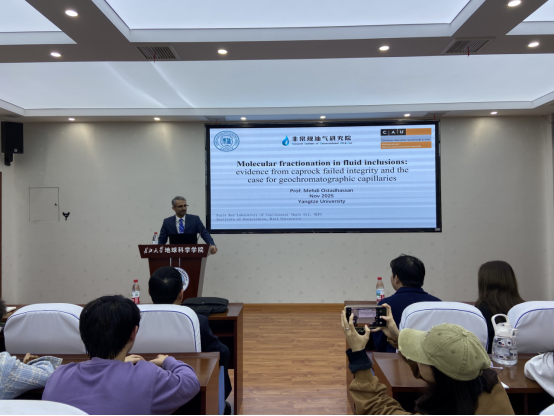 报告结束后,现场师生围绕O-PTIR技术的应用与前景与Ostadhassan教授进行了热烈而深入的交流。大家就O-PTIR在非常规储层孔隙流体识别、油气成藏过程示踪以及多技术联用等方向踊跃提问,教授逐一给予了详尽解答,并展望了该技术在未来推动油气地球化学向纳米尺度、原位实时分析方向发展的广阔前景。