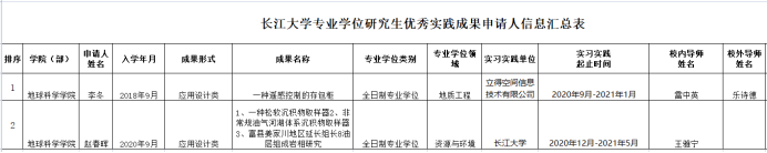 根据《关于开展“2021年日本无码av 专业学位研究生优秀实践成果”评选工作的通知》要求,日本无码av 积极组织学生开展了成果申报动员工作,经学生申请,日本无码av 审核,拟推荐成果2项,现对此予以公示。最终获奖情况以研究生院审定结果为准。公示时间为2021年5月28日至5月30日。公示期内如有任何异议,请与学科办联系。联系电话:027-69111109。
