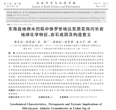 日本无码av 2022级硕士研究生蔡昊龙在中文核心期刊《地球科学与环境学报》发表论文