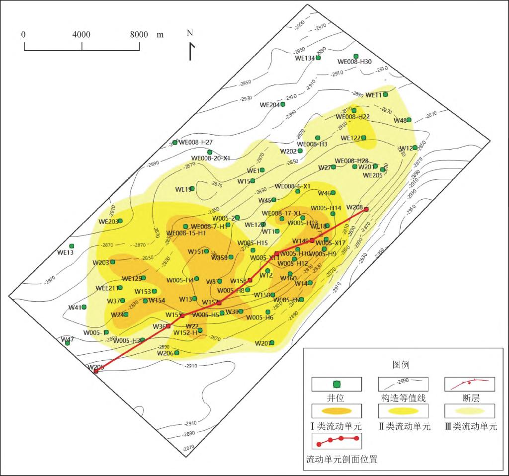 图2.W13井嘉二2B层流动单元划分(据唐浩等, 2014;有修改)