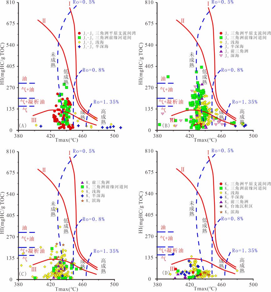 图1 巴布亚盆地中新生界不同沉积相烃源岩有机质类型特征