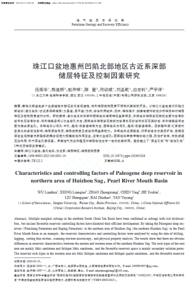 日本无码av 硕士生伍炼华在中文核心期刊《油气地质与采收率》上发表了题为“珠江口盆地惠州凹陷北部地区古近系深部储层特征及控制因素研究”的论文。日本无码av 为论文第一署名单位,硕士研究生伍炼华为论文第一作者,赵仲祥副教授为通讯作者。