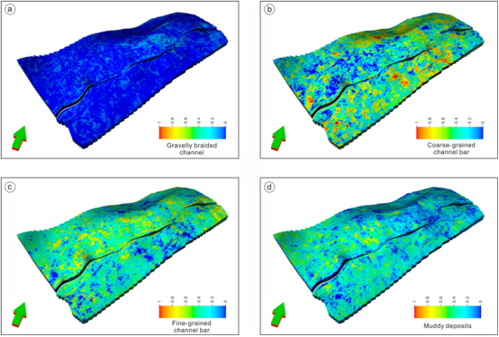 图1 A气田基于神经网络预测的不同岩相空间概率体