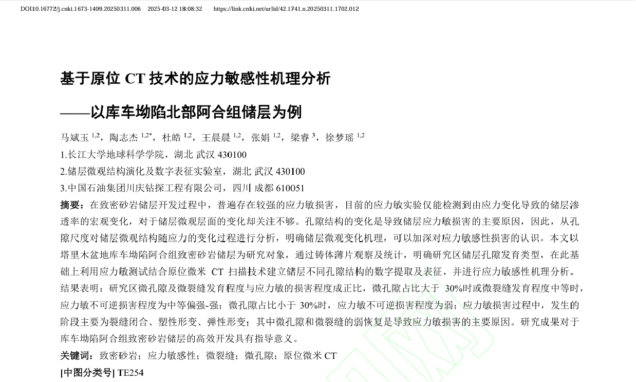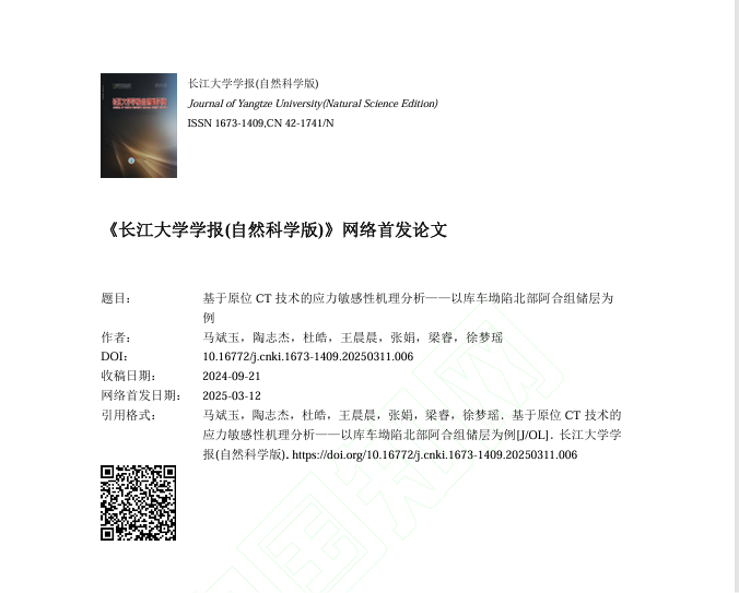 日本无码av 地质学研究生陶志杰在《日本无码av 学报(自然科学版)》上发表了题为“基于原位CT技术的应力敏感性机理分析——以库车坳陷北部阿合组储层为例”的研究论文。