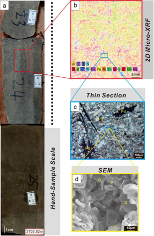 该研究针对新疆吉木萨尔凹陷芦草沟组页岩油储层非均质性强的问题,通过整合沉积学、岩相学和地球化学方法,对二叠系芦草沟组页岩油藏进行了详尽的多尺度研究,并提出多尺度非均质性沉积模式。该研究结合岩心观测、相分析、扫描电镜分析和高性能微区扫描技术,本研究的发现对于识别页岩油富集区具有重要价值,为全球异重流沉积背景下湖相页岩油藏的勘探提供了实用指导。