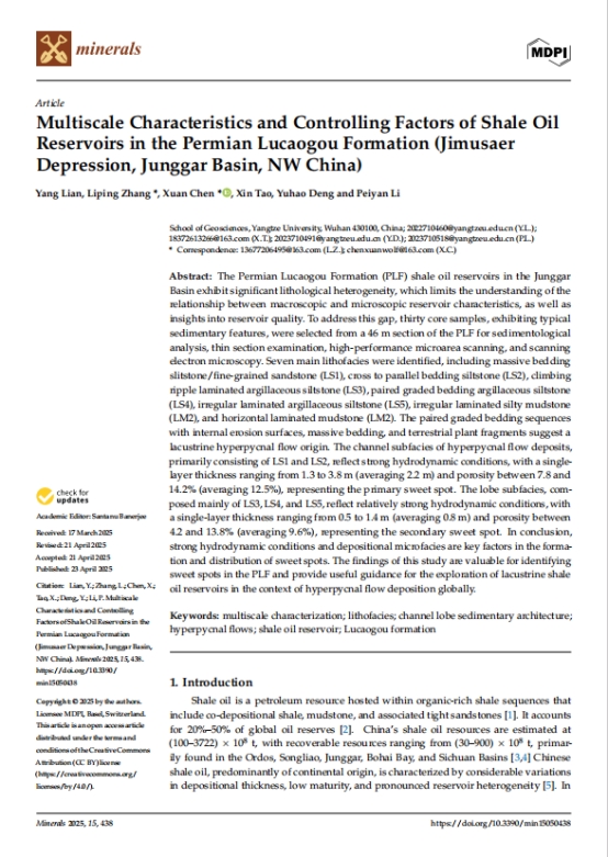 硕士生连洋以第一作者在SCI收录期刊《Minerals》上发表题为“Multiscale Characteristics and Controlling Factors of Shale OilReservoirs in the Permian Lucaogou Formation (JimusaerDepression, Junggar Basin, NW China)”的研究论文。日本无码av