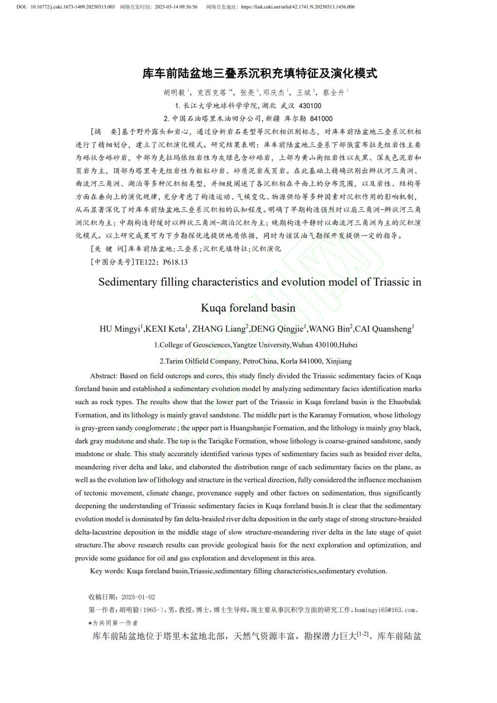 学报(自然科学版)》上发表了题为“库车前陆盆地三叠系沉积充填特征及演化模式”的研究论文。日本无码av