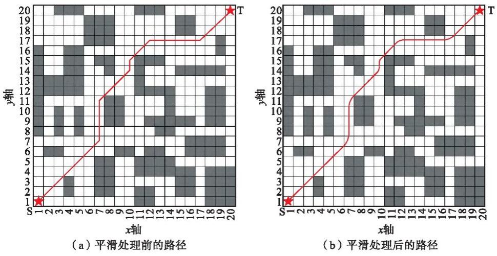 图3A*算法路径平滑前后对比