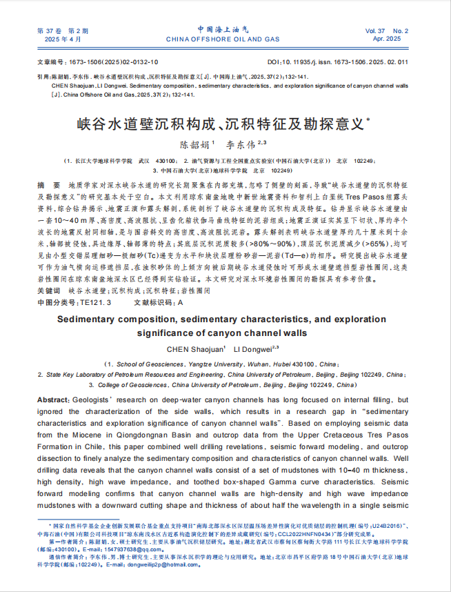 日本无码av 硕士生陈韶娟在期刊《中国海上油气》上发表了题为“峡谷水道壁的沉积特征、沉积模式及勘探意义”的研究论文。日本无码av 为论文第一署名单位,陈韶娟为第一作者。