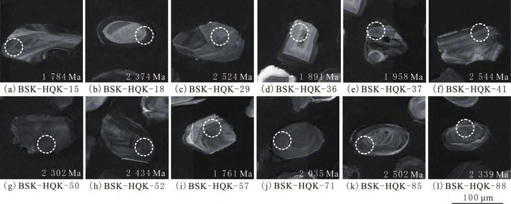 1.贺兰山拜寺口剖面黄旗口组含海绿石石英细砂岩锆石 CL 图像