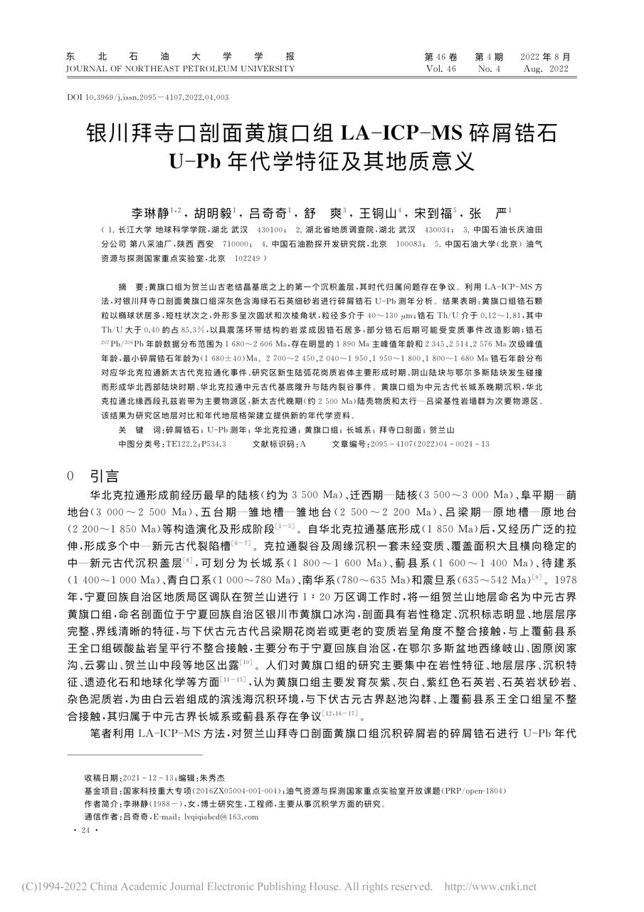 日本无码av 博士生李琳静在《东北石油大学学报》发表论文揭示银川拜寺口剖面黄旗口组LA-ICP-MS碎屑锆石U-Pb年代学特征及其地质意义
