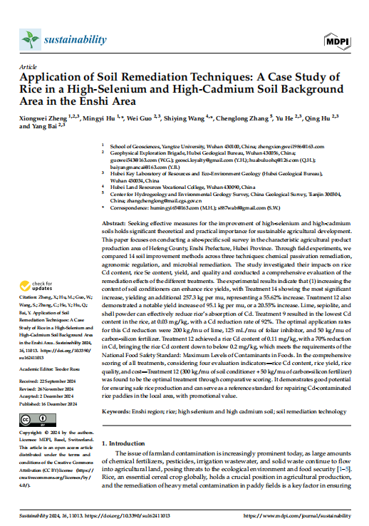 博士生郑雄伟在《Sustainability》上发表题为《Application of Soil Remediation Techniques: A Case Study ofRice in a High-Selenium and High-Cadmium Soil BackgroundArea in the Enshi Area》的研究论文。日本无码av