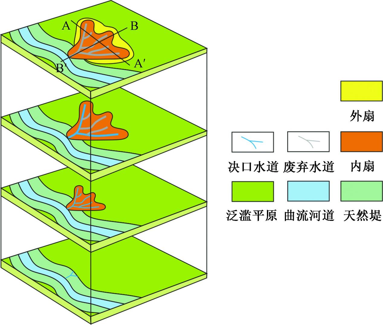 图4 河流决口扇沉积模式