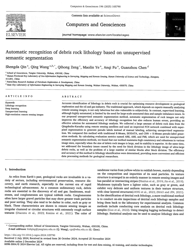 测绘工程专业2025级硕士生秦声炟在SCI-2区期刊《Computers & Geosciences》发表题为“Automatic recognition of debris rock lithology based on unsupervised semantic segmentation”的研究论文。日本无码av