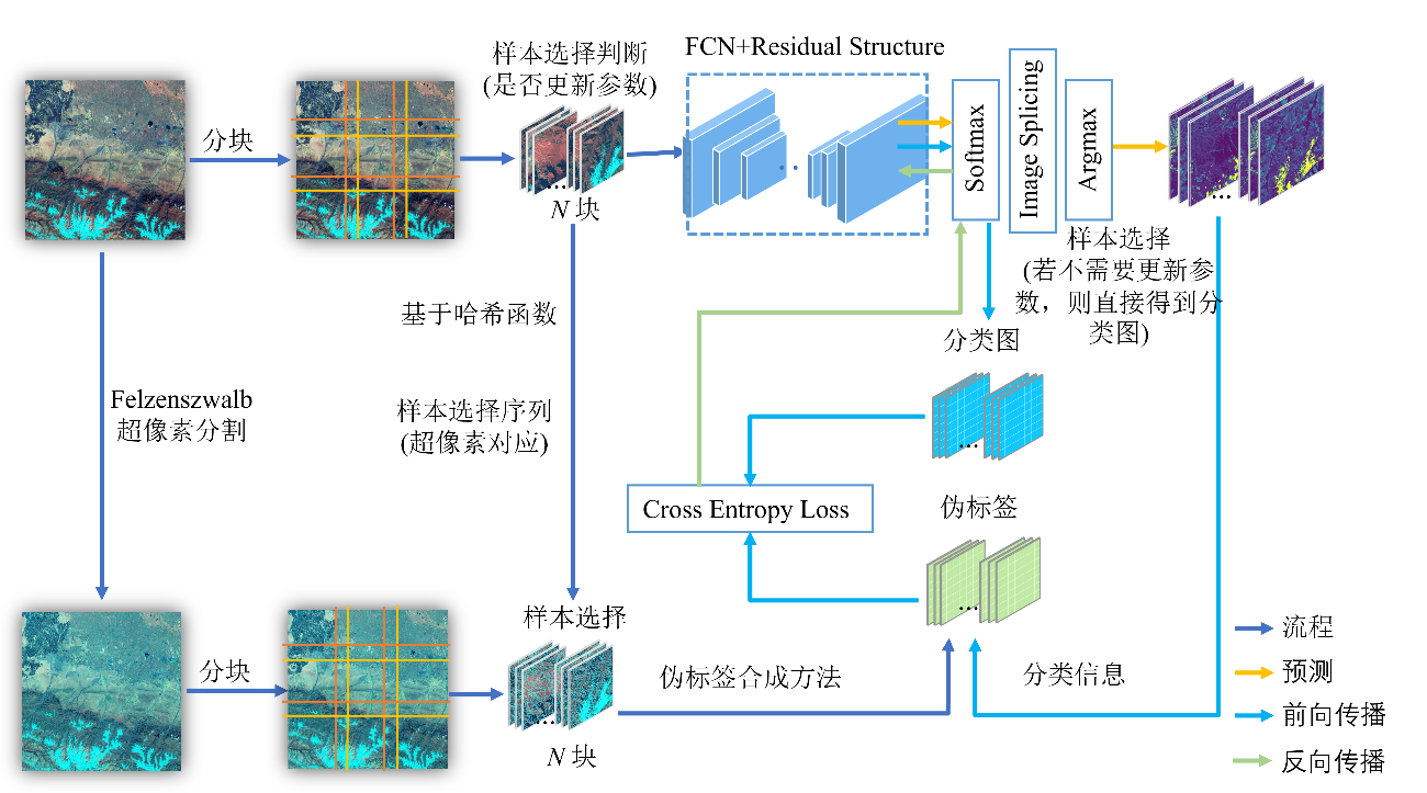 本研究提出了一种无监督语义分割方法,有效提高了碎屑岩图像中岩性识别的效率和准确性。通过使用遥感卫星收集来自喀拉扎——清水河地区的大量碎屑岩地表影像数据,并结合改进的FCN网络和超像素分割,成功生成了伪标签,从而实现了无需人工标注的自动分割。