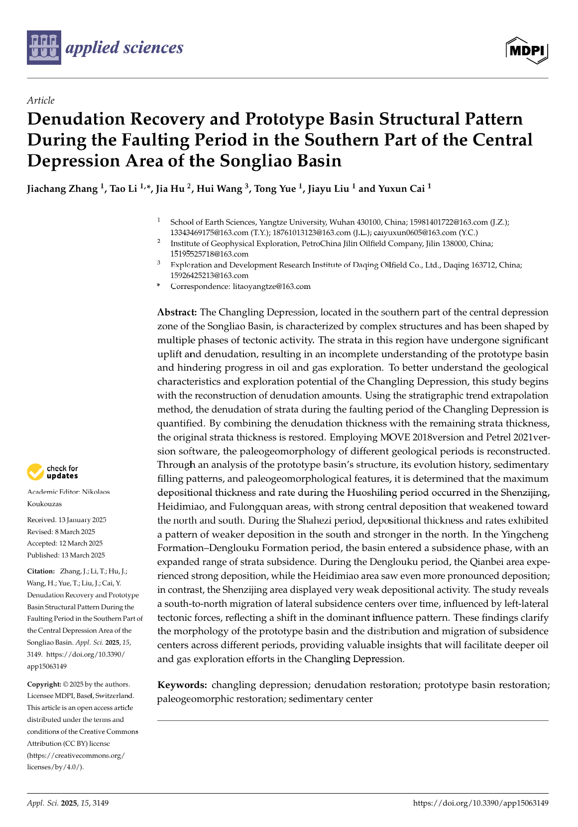 硕士研究生张珈畅在《applied sciences》上发表题目为“Denudation Recovery and Prototype Basin Structural Pattern During the Faulting Period in the Southern Part of the Central Depression Area of the Songliao Basin”的研究论文。日本无码av