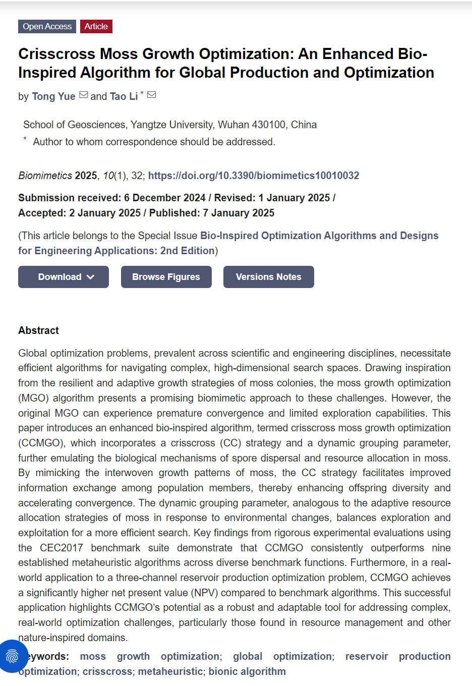 硕士研究生岳彤在期刊《Biomimetics》上发表题为“Crisscross Moss Growth Optimization: An Enhanced Bio-Inspired Algorithm for Global Production and Optimization”的研究论文。日本无码av