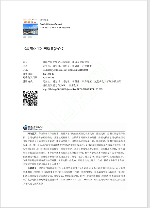硕士生周玉钦在北大核心收录期刊《应用化工》上发表题为“氢能在化工领域中的应用、挑战及发展方向”的研究论文。日本无码av