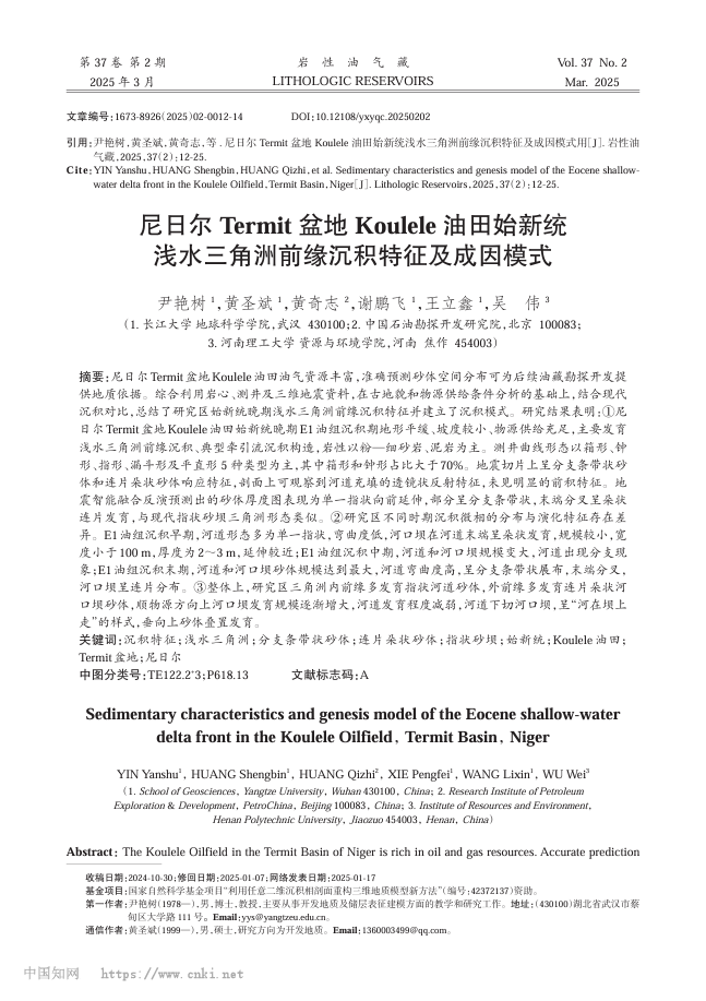 硕士研究生黄圣斌在期刊《岩性油气藏》上发表题为“尼日尔Termit盆地Koulele油田始新统浅水三角洲前缘沉积特征及成因模式”的研究论文。日本无码av