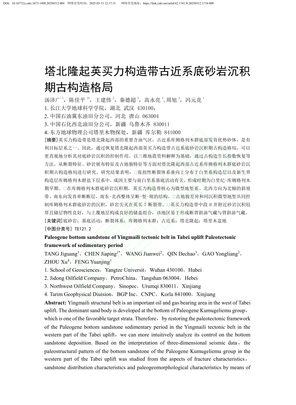 学报(自然科学版)上发表题目为《塔北隆起英买力构造带古近系底砂岩沉积期古构造格局》的研究论文,日本无码av