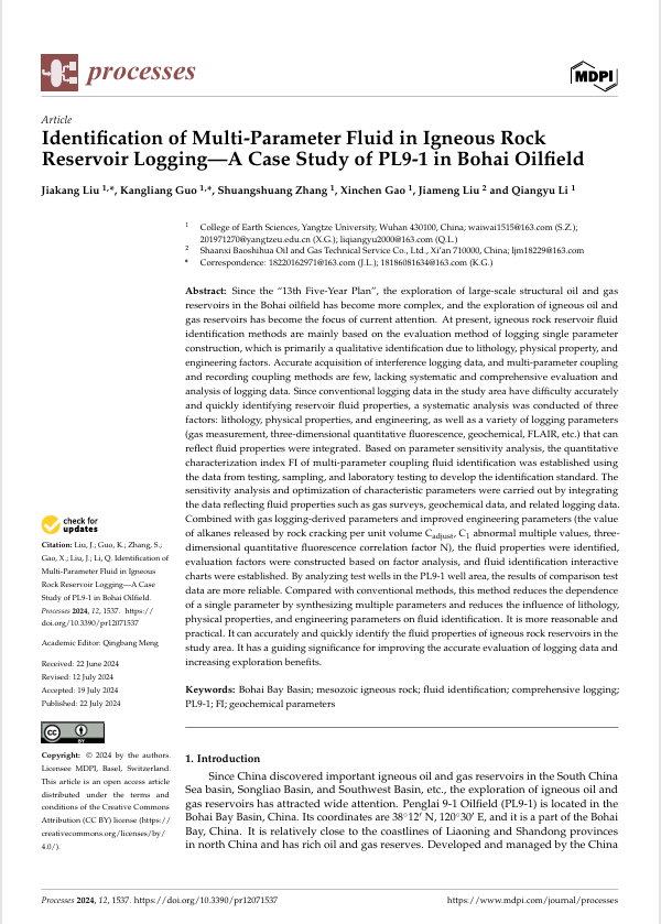 地质资源与地质工程专业2022级硕士研究生刘佳康在中科院三区期刊《Processes》发表题为“Identification of Multi-Parameter Fluid in Igneous Rock Reservoir Logging—A Case Study of PL9-1 in Bohai Oilfield”的研究论文。日本无码av