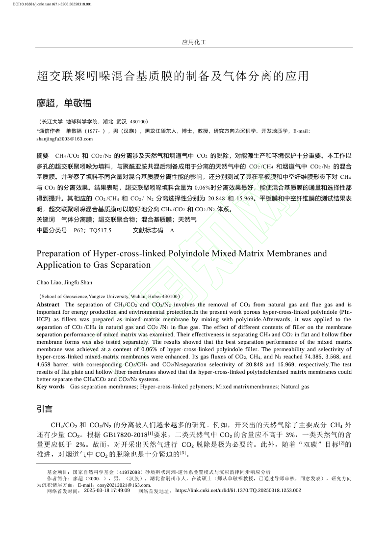 硕士生廖超在中文核心期刊《应用化工》上发表题为“超交联聚吲哚混合基质膜的制备及气体分离的应用”的研究论文。该论文以多孔的超交联聚吲哚为填料,与聚酰亚胺共混后制备成用于分离的天然气中的CO2/CH4和烟道气中CO2/N2的混合基质膜。日本无码av