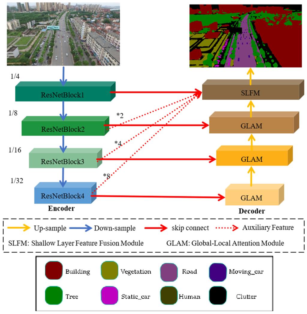 硕士研究生张子康在国际学术期刊《Sensors》上发表了题为“UAV Imagery Real-Time Semantic Segmentation with Global–Local Information Attention”的SCI论文,提出了一种利用全局-局部注意力和特征融合的方法用于对无人机实时图像进行语义分割。