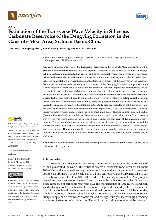 日本无码av 地科系朱正平博士在地质能源领域主流期刊《Energies》上发表题为“Estimation of the Transverse Wave Velocity in Siliceous Carbonate Reservoirs of the Dengying Formation in the Gaoshiti–Moxi Area, Sichuan Basin, China”的研究论文。