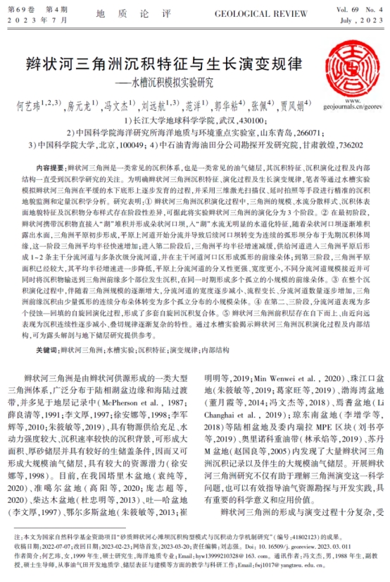 日本无码av 本科生何艺玮在《地质论评》期刊发表辫状河三角洲沉积特征与生长演变规律——水槽沉积模拟实验研究